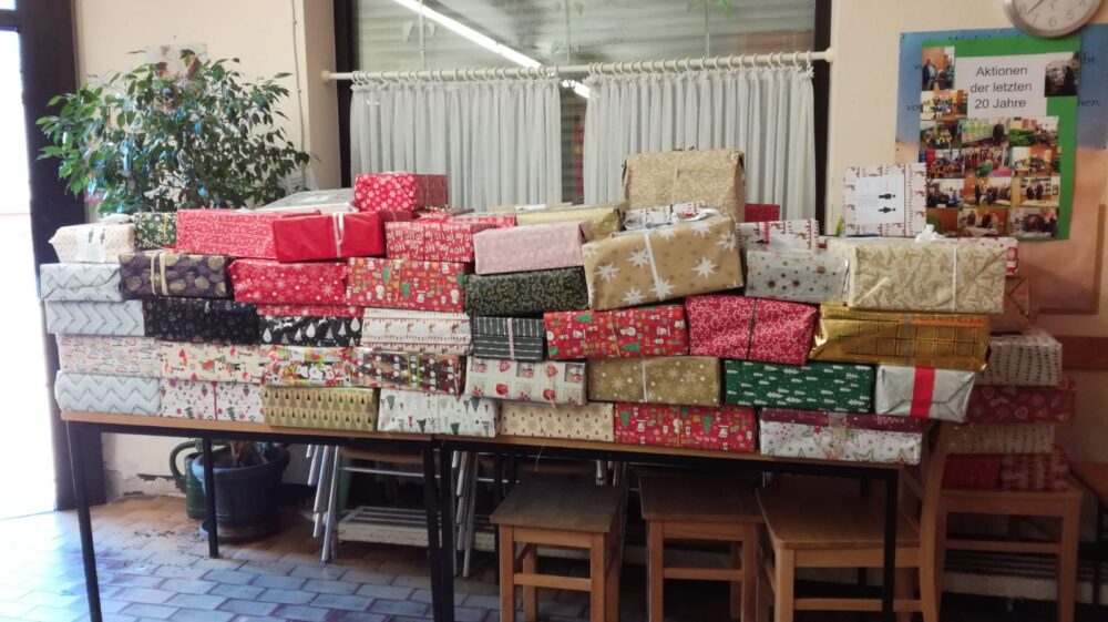 Am 18. Dezember konnten wir 166 liebevoll verpackte Weihnachtspäckchen für Kinder, Jugendliche und Erwachsene von den Schülerinnen und Schülern des OHG in Empfang nehmen. Das Team der Schülervertretung organisierte wie in den vergangenen Jahren diese erfolgreiche Sammlung. Herzlichen Dank an Spender und Spenderinnen, Organisatoren und Organisatorinnen sowie an alle, die diese Aktion in irgendeiner Weise unterstützt haben.