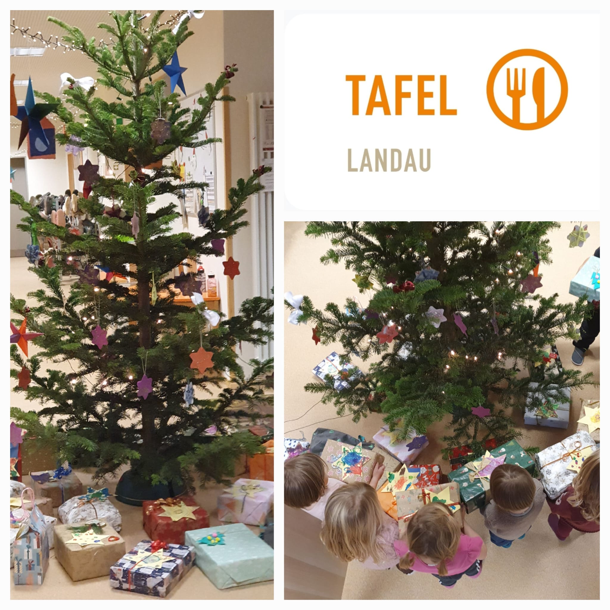 Selbstgestaltete Sterne der Kinder dienten als Anhänger für Geschenke für unsere Tafelkunden. Sie konnten sich über Päckchen mit Zahnpasta, Zahnbürsten, Duschgel und noch einer netten Kleinigkeit freuen. Herzlichen Dank an das Kita-Team und den Elternausschuss für die Organisation der Spendenaktion und an alle Spender und Spenderinnen für die liebevoll gepackten Päckchen.